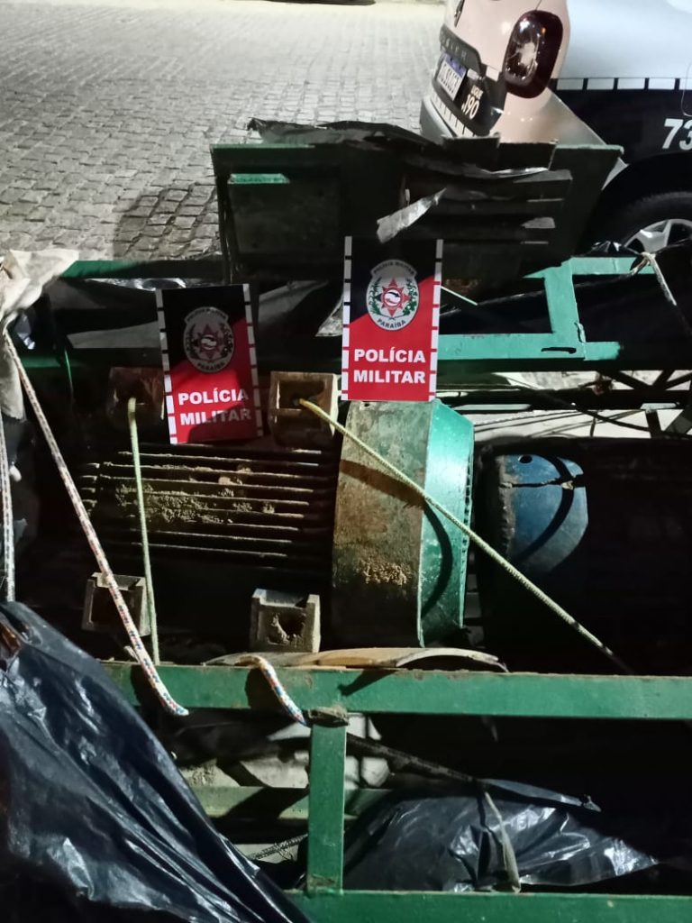 Todo o material que estava sendo roubado foi recuperado, sendo 02 alicates mecânicos, 01 caixa de ferramentas, 05 motores elétricos, 01 lixadeira elétrica e um reboque de carro placa EIQ 6139-PB.