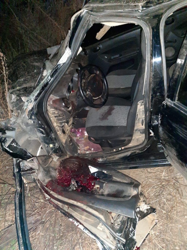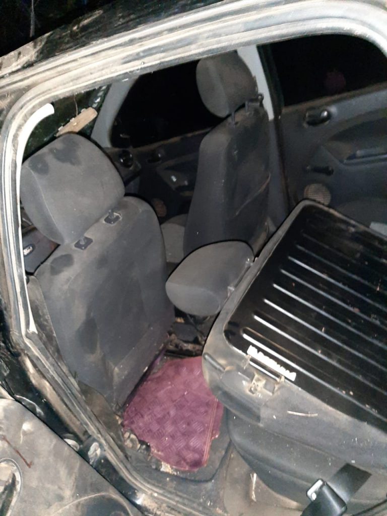 As fotos mostram que o automóvel ficou praticamente destruído e foi quase um milagre seus ocupantes terem saído sem maiores gravidades.