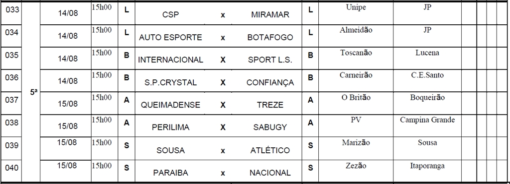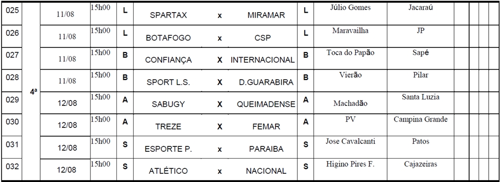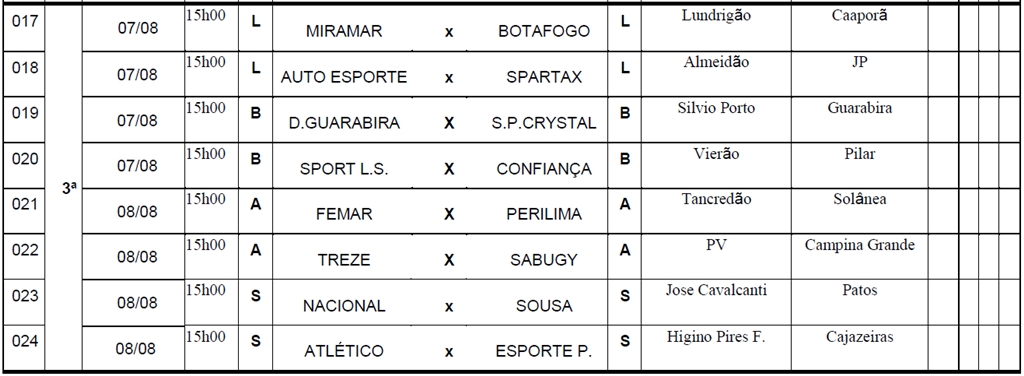 Ainda também há estádios que vão receber jogos da competição estadual pela primeira vez: Júlio Gomes (Jacaraú), Vieirão (Pilar), Machadão (Santa Luzia) e Toca do Papão (Sapé).