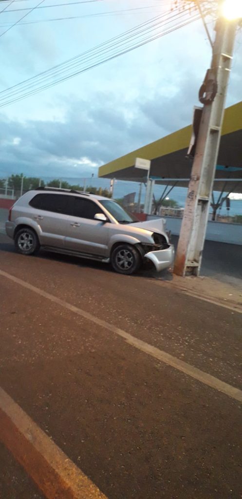 O acidente aconteceu em frente ao supermercado Hiper Queiroz, logo na entrada para a ponte do Jatobá, sentido Monte Castelo. O veículo, modelo Hyundai Tucson, de cor prata, colidiu em um poste. As imagens que circulam nas redes sociais mostram o estrago feito no carro, que ficou com a frente amassada.