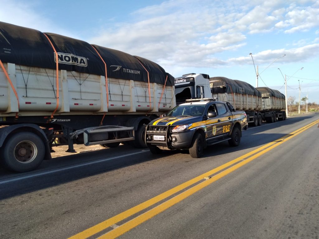 A Polícia Rodoviária Federal (PRF) apreendeu, no último sábado (11), um caminhão bitrem que realizava transporte de mercadorias de forma irregular. A nota fiscal apresentada pelo condutor tinha indícios de fraude.