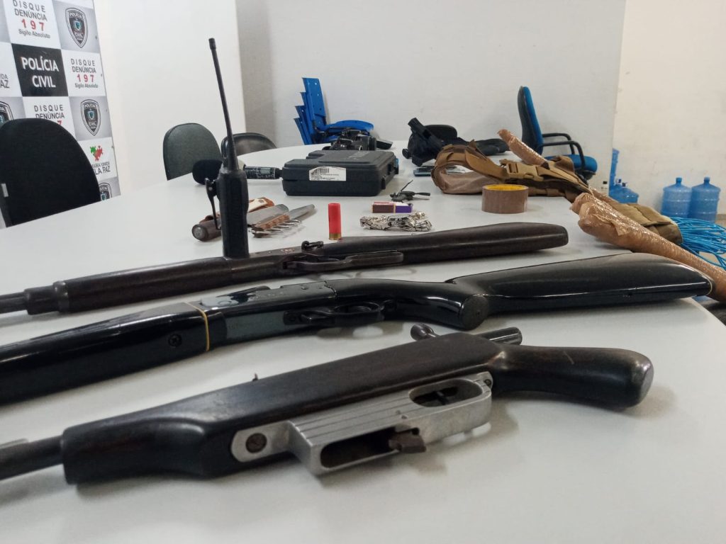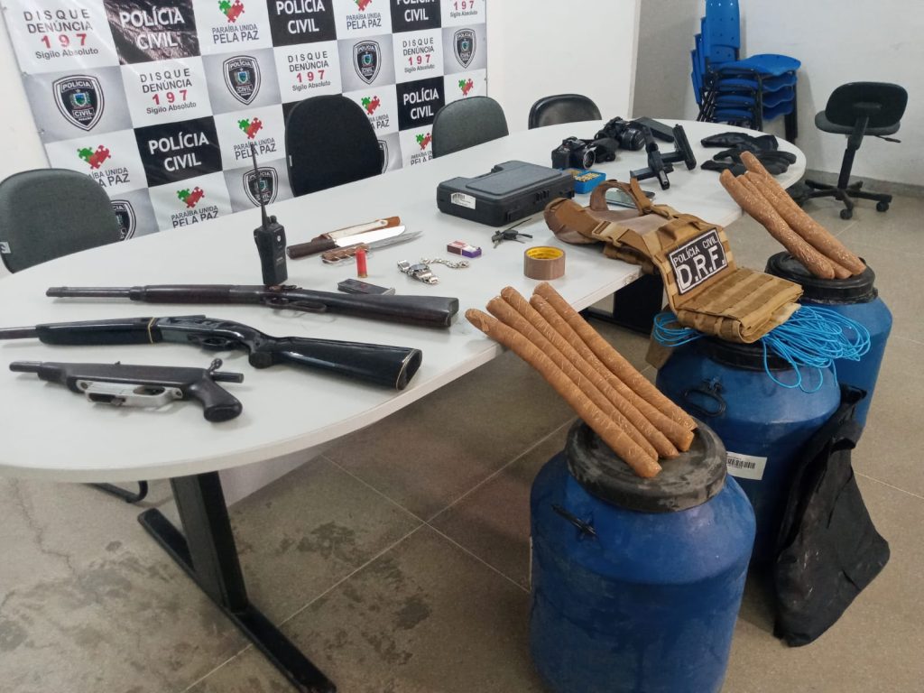 As armas, explosivos e demais objetos apreendidos estão à disposição da justiça.