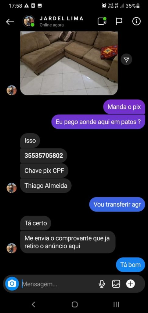 Uma amiga de Jardel acabou caindo no golpe e depositou R$ 2 mil no pix encaminhado pelos golpistas. Alguns produtos anunciados foram: um Iphone 12 de 256GB no valor de R$ 3.900,00, esse aparelho custa em média R$ 6 mil; TV Samsung 58 polegadas, por R$ 1.100,00; Geladeira por R$ 1.600,00; Máquina de lavar por R$ 600,00; dentre outros.