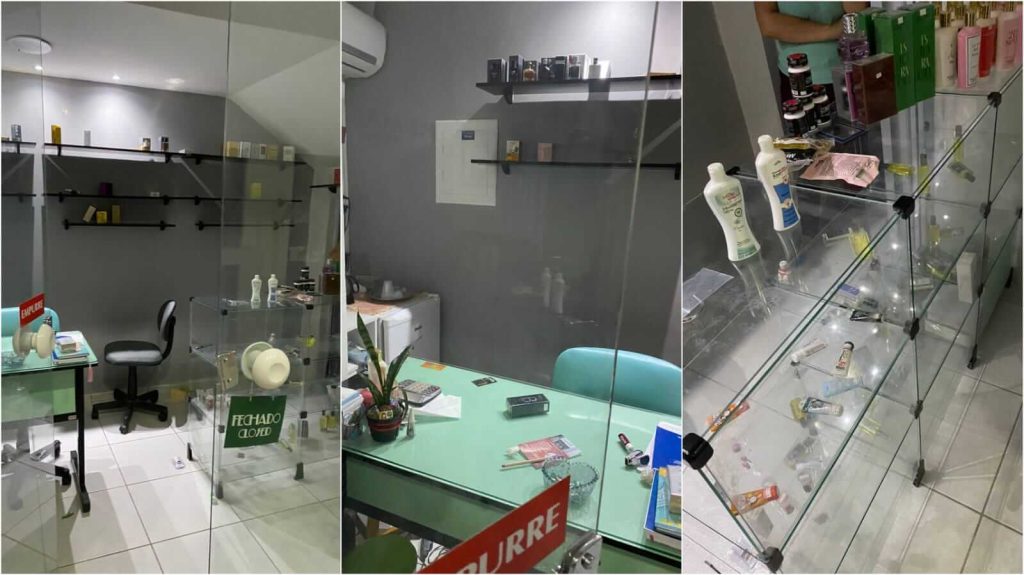 O assalto aconteceu por volta das 20h45min, e na ação os bandidos levaram diversos perfumes e cosméticos da loja "Aromas Perfumaria e Sex Shop", que é uma das primeiras lojas próximo à porta principal do Mini Shopping.