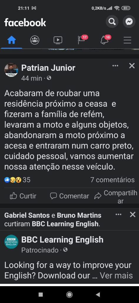 Em sua rede social o Sargento e vereador Patrian comentou esse fato.