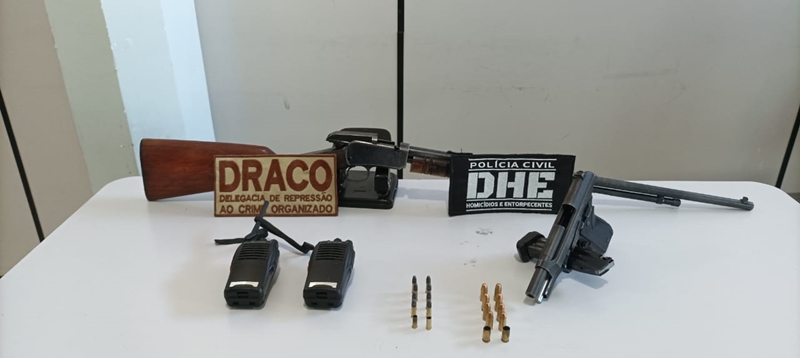 Na casa onde o criminoso estava escondido, foram encontrados uma pistola com 10(dez) munições e um rifle com 10 (dez) munições, incluindo as munições deflagradas usadas contra os policiais.
