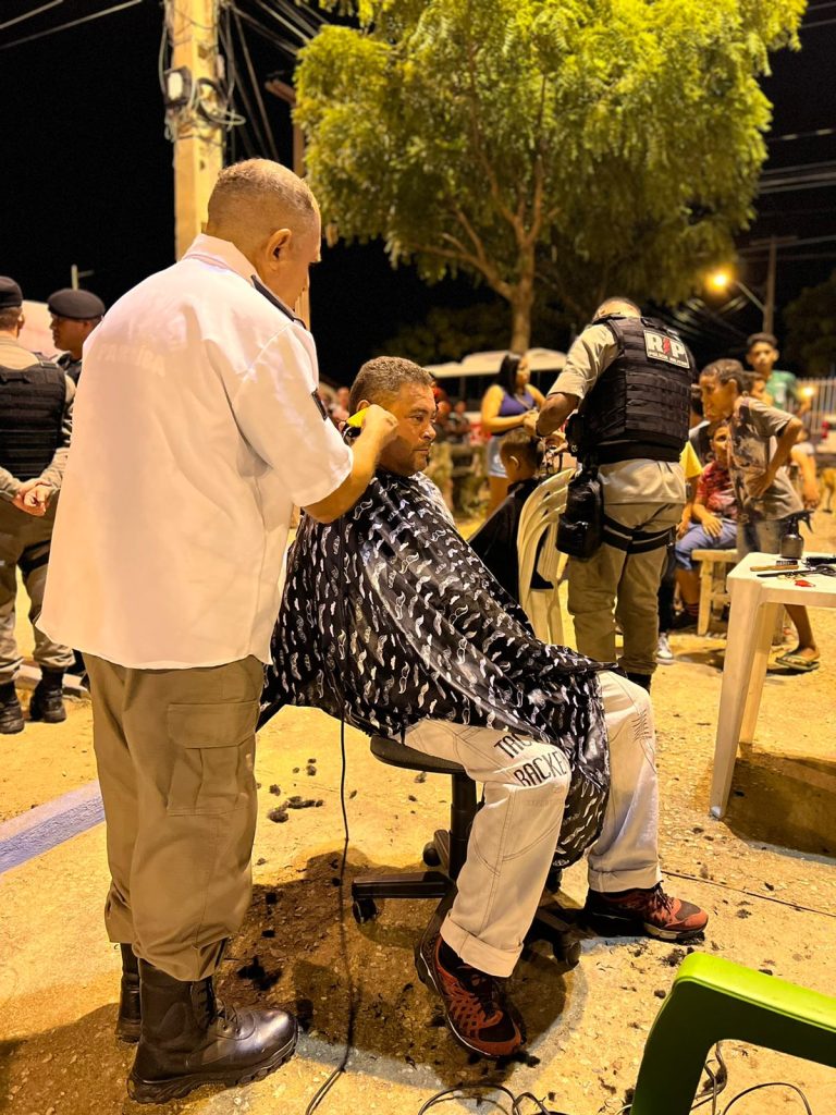 Foram realizados durante o evento cortes de cabelo, brincadeiras, apresentações culturais, exposições de materiais inerentes a estrutura policial, distribuição de brindes e picolés.