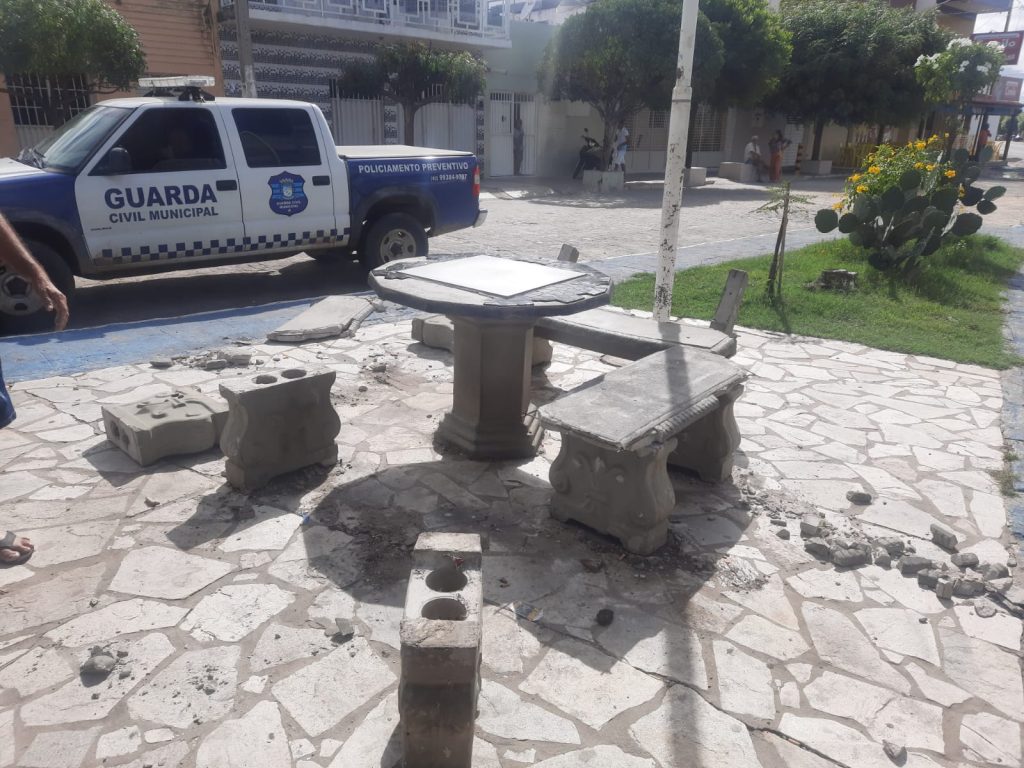 De acordo com o coordenador da Guarda, André Fernandes, os agentes tomaram conhecimento que a praça tinha sido depredada na madrugada, e se dirigiram ao local para averiguar as condições.