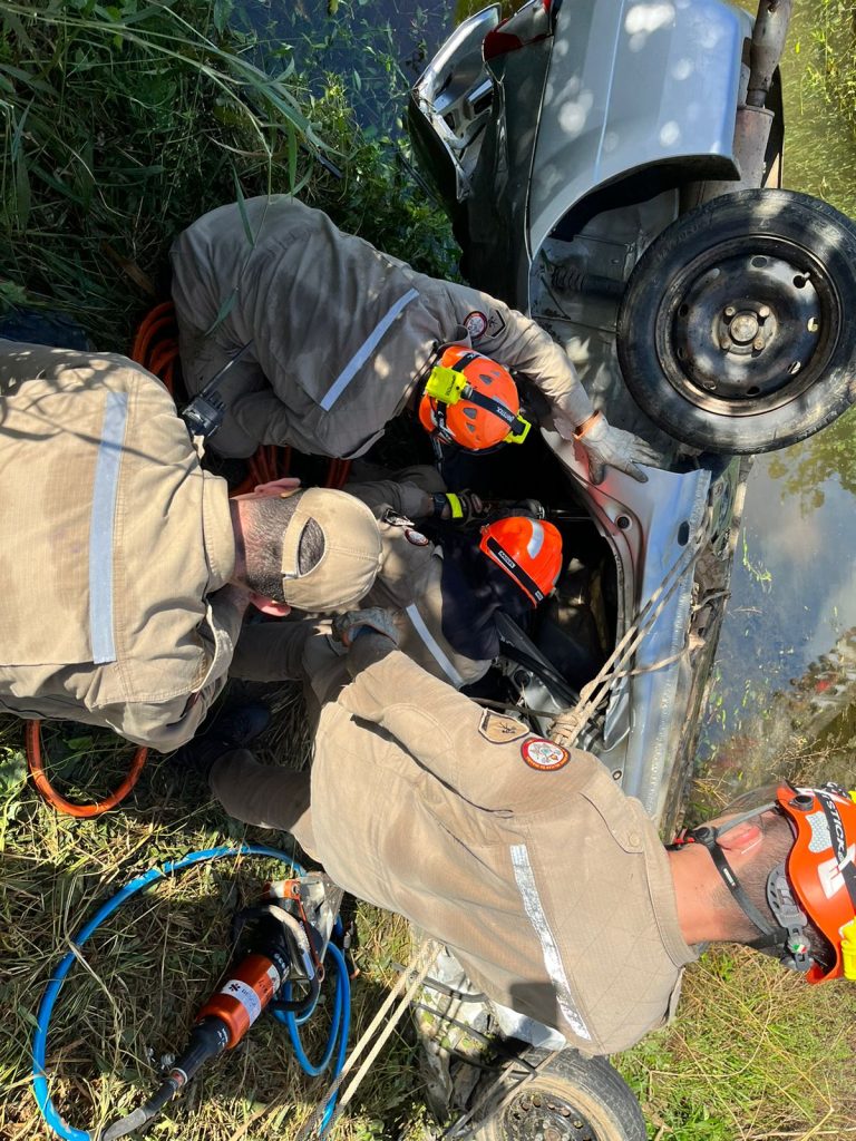 Chegando ao local, as equipes constataram que o veículo perdeu o controle e capotou. O carro desceu pela ribanceira e foi parar embaixo de uma ponte, sobre o Rio Catingueira.