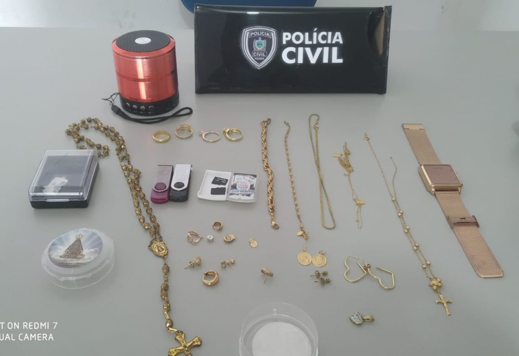 A prisão se deu por volta das 9 horas da manhã de hoje, no bairro Santa Clara, onde reside o acusado. O mesmo foi pego de posse de vários objetos que foram subtraídos no furto de ontem.