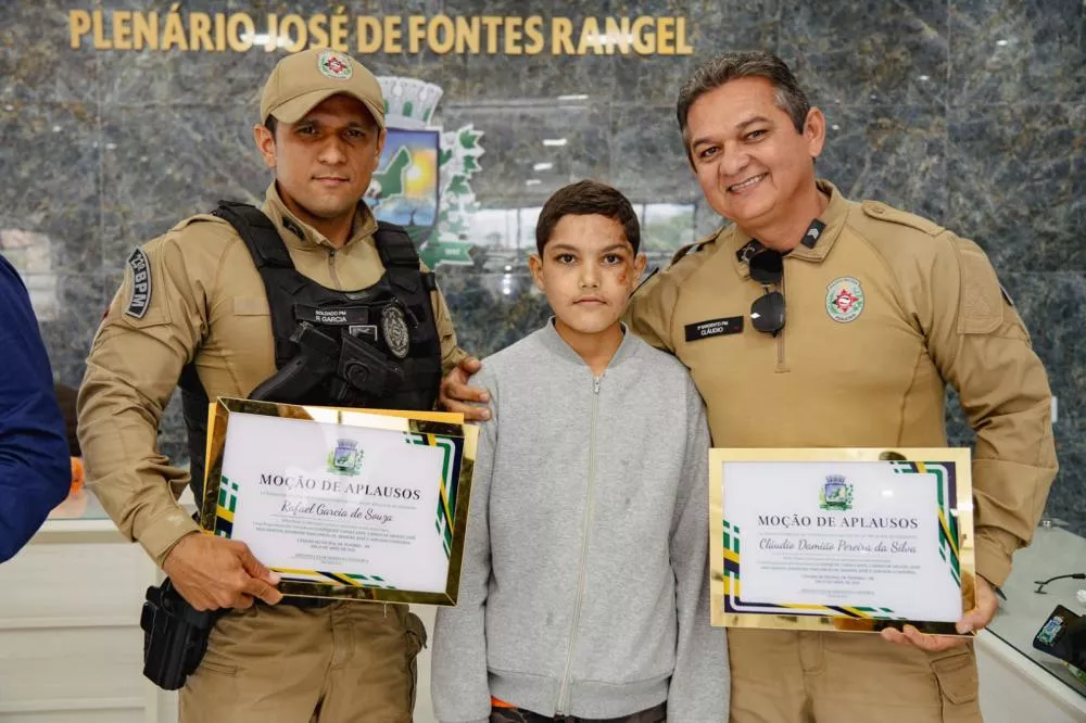 MOÇÃO DE APLAUSOS Policiais do 23º BPM são homenageados em Tenório por ato de bravura ao salvarem garoto autista de incêndio criminoso