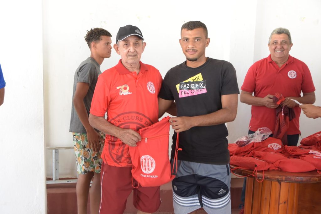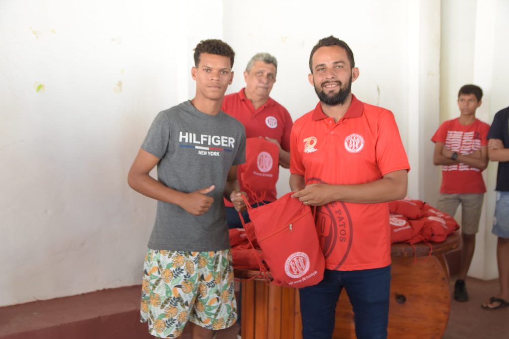 Diante da presença do treinador Filipe Fernandes e do coordenador Toinho do Esporte, foram entregues matériais de treinos atletas do Patinho com a presença do seu Presidente Dário Leitão, que repassou os kits para o uso dos jogadores.