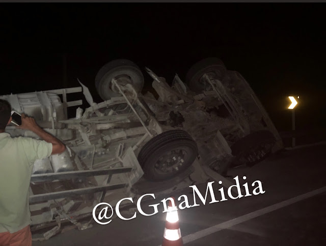 De acordo com as informações, o motorista de um caminhão perdeu o controle na curva da Santa Maria e capotou o veículo.