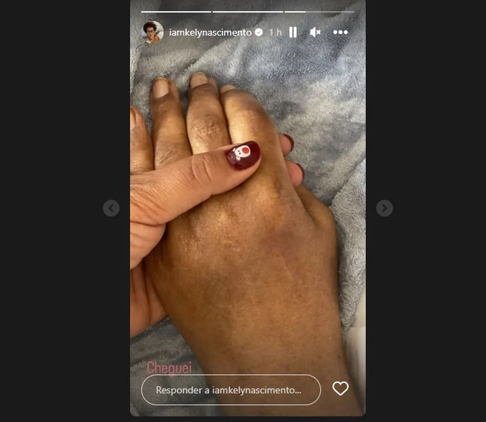 Uma das filhas de Pelé, Kelly Nascimento, visitou o pai no hospital e postou fotos ao lado dele.