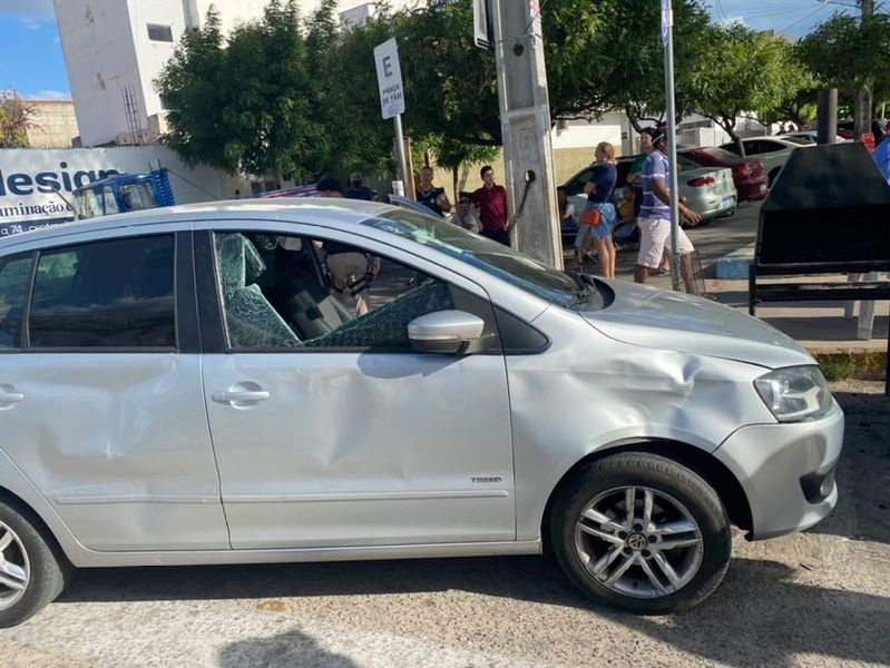 "Dois jumentos vinham correndo e a viatura da Polícia Militar desviou deles que pegaram de cheio em mim. Absurdo isso, vinha com velocidade de 30 km/h, inclusive a viatura da Polícia Militar viu tudo! Graças a Deus não aconteceu nada comigo e meu filho, que vinha comigo, mas se fosse de moto tinha sido pior. Olha, eu livrei um casal que vinha atrás do meu carro, que ia pegar de cheio neles. Muita gente presenciou, inclusive os taxistas que me deram assistência e a viatura que também me deu suporte, me orientando o que fazer. Já fiz o B.O., como os policiais orientaram, pois meu carro foi bastante danificado. Agora quero providências da prefeitura e que o prefeito resolva essa situação na cidade", relatou a empresária.
