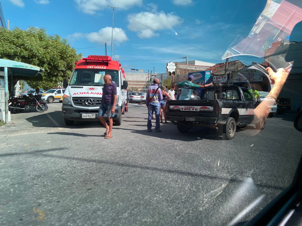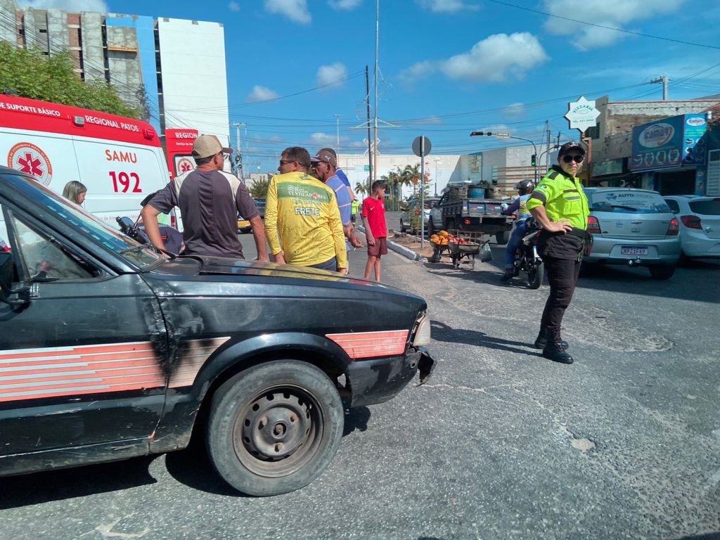 Um acidente foi registrado na manhã desta terça-feira (13) na Avenida Epitácio Pessoa, no Centro de Patos, envolvendo uma motocicleta e um carro que realizava fretes.