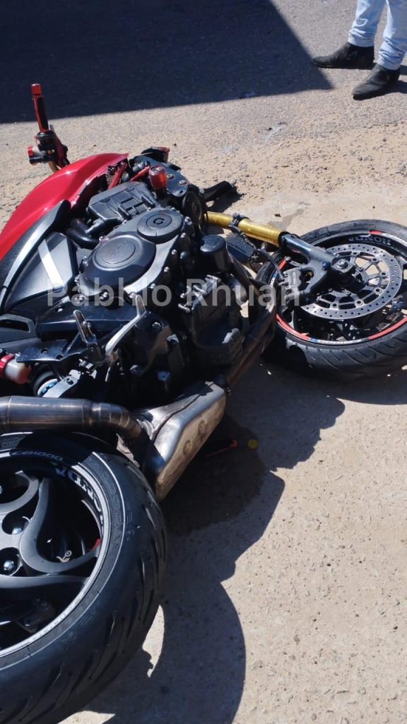 Uma motocicleta de alta cilindrada acabou colidindo violentamente na lateral de um carro na Rua José Jerónimo da Silva, na cidade de Matureia, Região Metropolitana de Patos, na manhã desta sexta-feira (06).