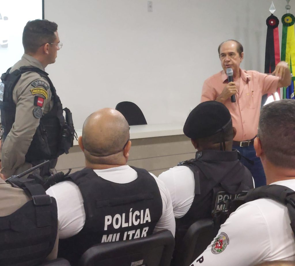 A reunião contou com a presença do Comandante do 3º Batalhão, Tc Esaú, o subcomandante da Unidade, Major Onassis e o chefe da seção de planejamento e operações, Tenente Bonfim, juntamente com representantes classistas do comércio de nossa cidade.