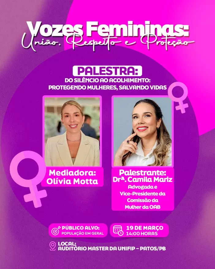 Palestra Palestra sobre feminicídio acontecerá na próxima quinta-feira (19), em Patos