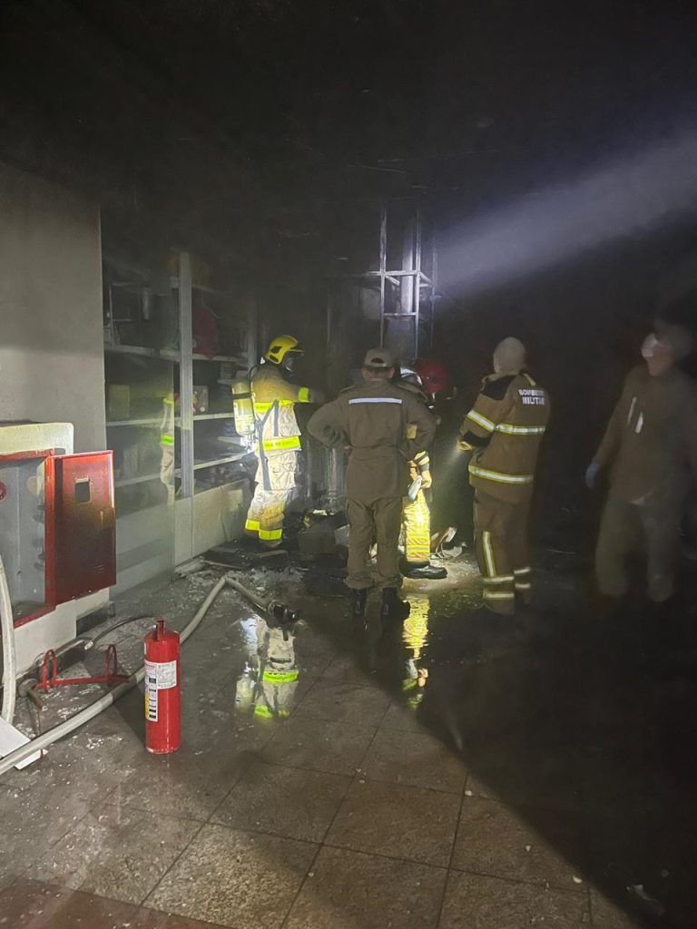 "O fogo estava concentrado nessa máquina, mas realmente o shopping estava tomado de fumaça, porque é um ambiente completamente fechado, com ar-condicionado, e realmente fez muita fumaça. Então, a melhor opção que nós conseguimos foi arrombar a frente, pelo supermercado. Contemos o fogo com o próprio hidrante do Guedes, que havia ao lado da máquina, fizemos esse combate e retiramos o pessoal", comentou.