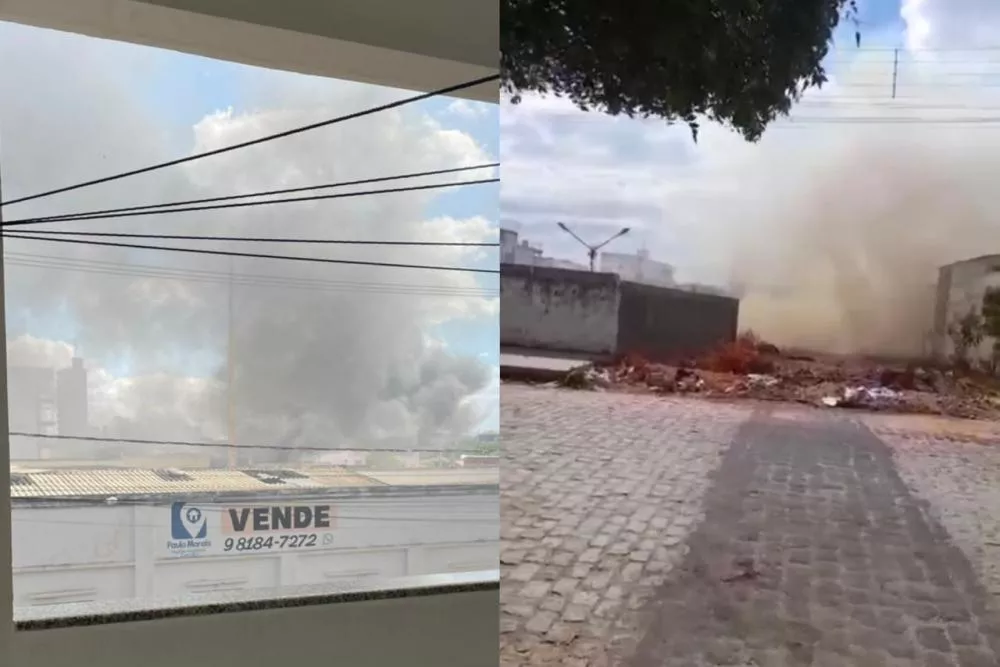 Transtornos Incêndio em terreno abandonado provoca transtornos e gera revolta de moradores no bairro Belo Horizonte, em Patos