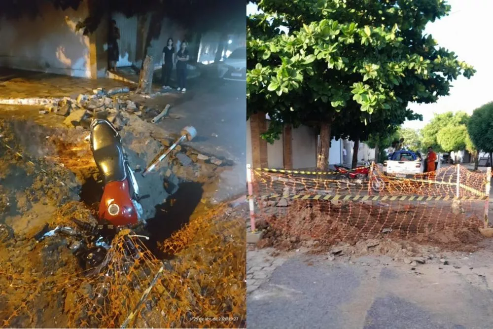 ACIDENTE Motociclista fica ferido após cair em buraco no bairro Belo Horizonte, em Patos; Cagepa afirma que local estava sinalizado