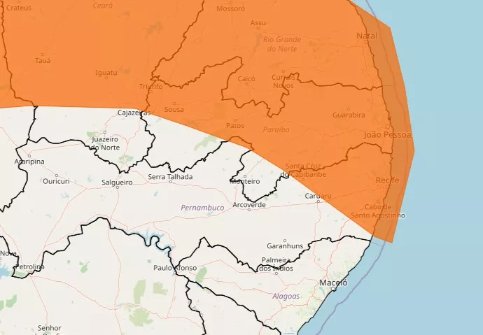 Chuva forte Inmet coloca todos os municípios da Paraíba sob alerta de chuva forte até domingo (8)