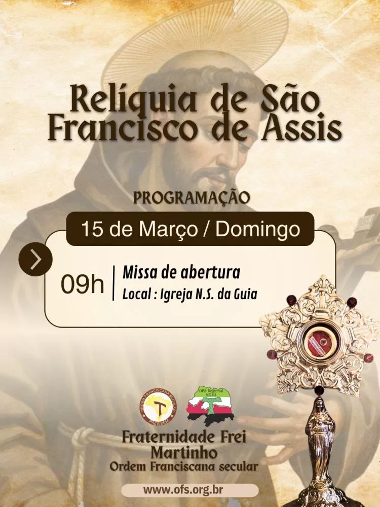 Relíquia Patos inicia neste domingo (15) peregrinação da relíquia de São Francisco de Assis com missa na Catedral às 9h