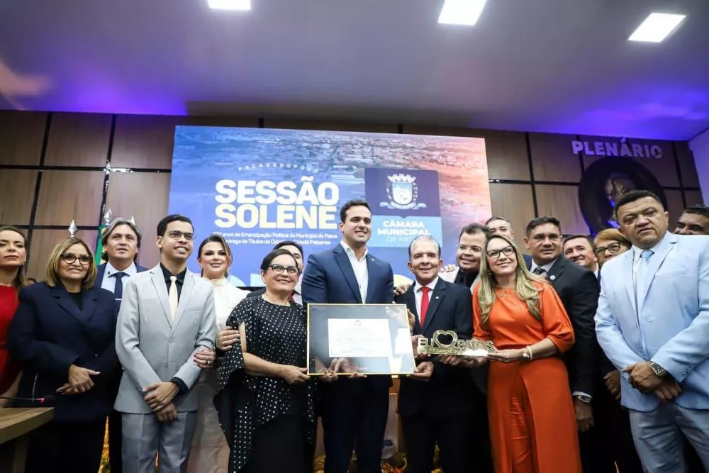 Aniversário de Patos Durante sessão especial, vice-governador Lucas Ribeiro destaca avanços em Patos e recebe título de Cidadão Patoense