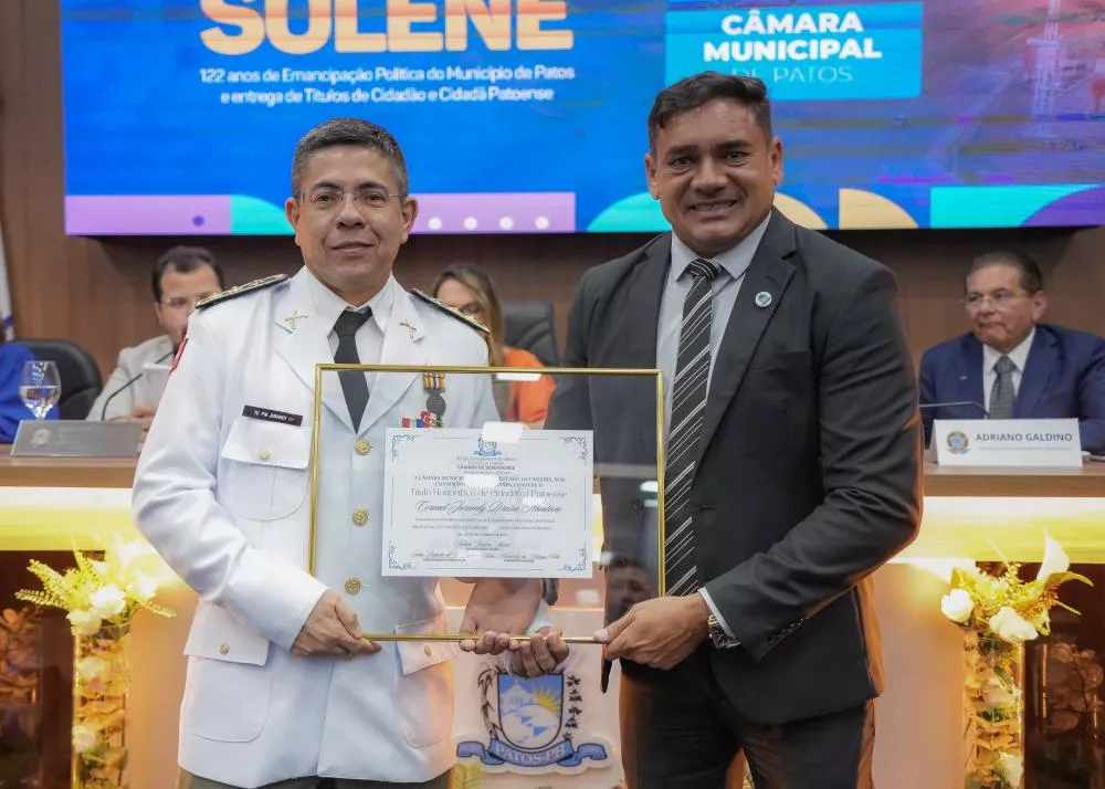 Sessão solene Vereador Júnior Contigo entrega Títulos de Cidadão Patoense e celebra os 122 anos de Patos com reconhecimento a quem contribui para o desenvolvimento da cidade