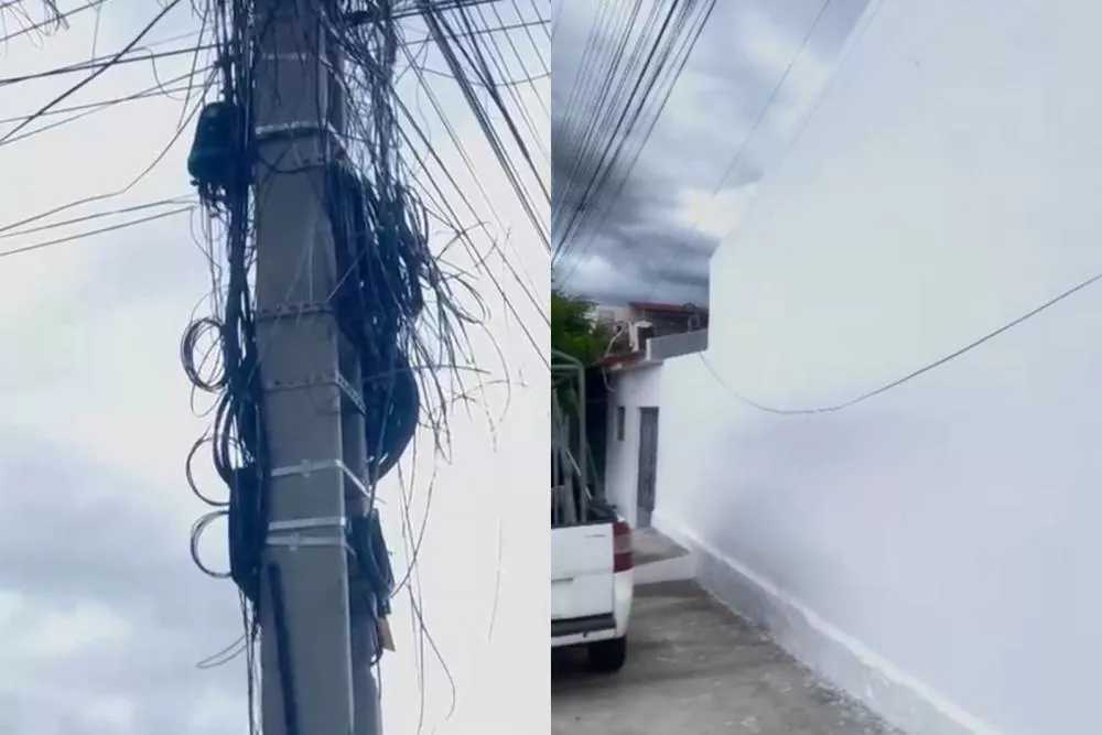 RISCO NA CALÇADA Moradores denunciam fios soltos em calçada no bairro Monte Castelo e cobram providências