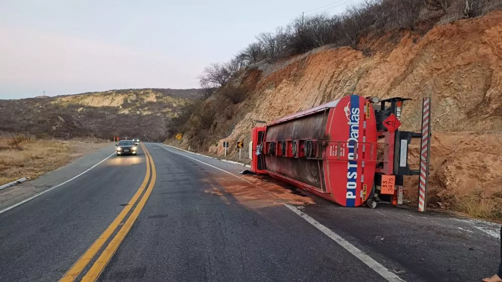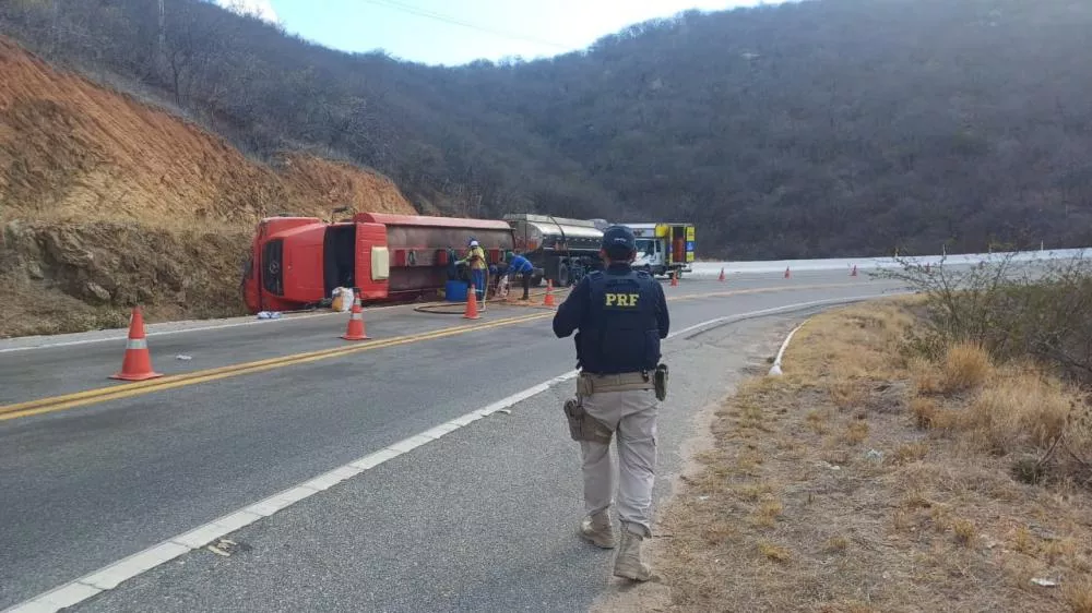 Rodovia liberada PRF libera tráfego na Serra de Santa Luzia após operação segura de transbordo de combustível de caminhão-tanque tombado na BR-230