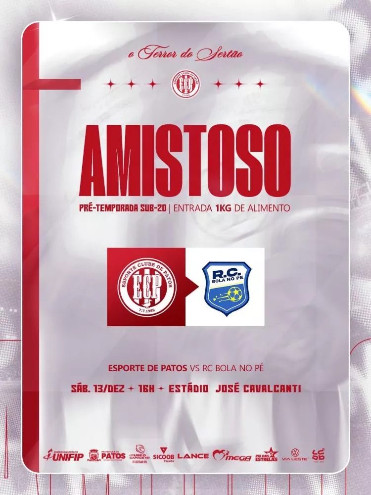 Amistoso Esporte de Patos realiza amistoso Sub-20 neste sábado visando preparação para a Copinha 2026