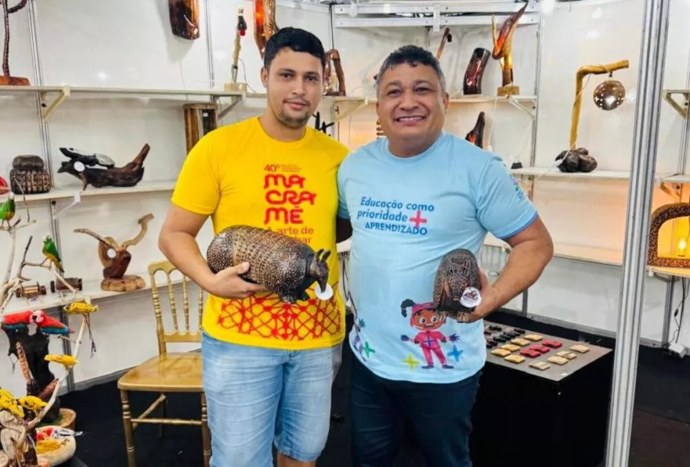 Artesanato Prefeito de Salgadinho-PB, Erivan Júlio visita Feira de Artesanato em Campina Grande ao lado do artesão Brás
