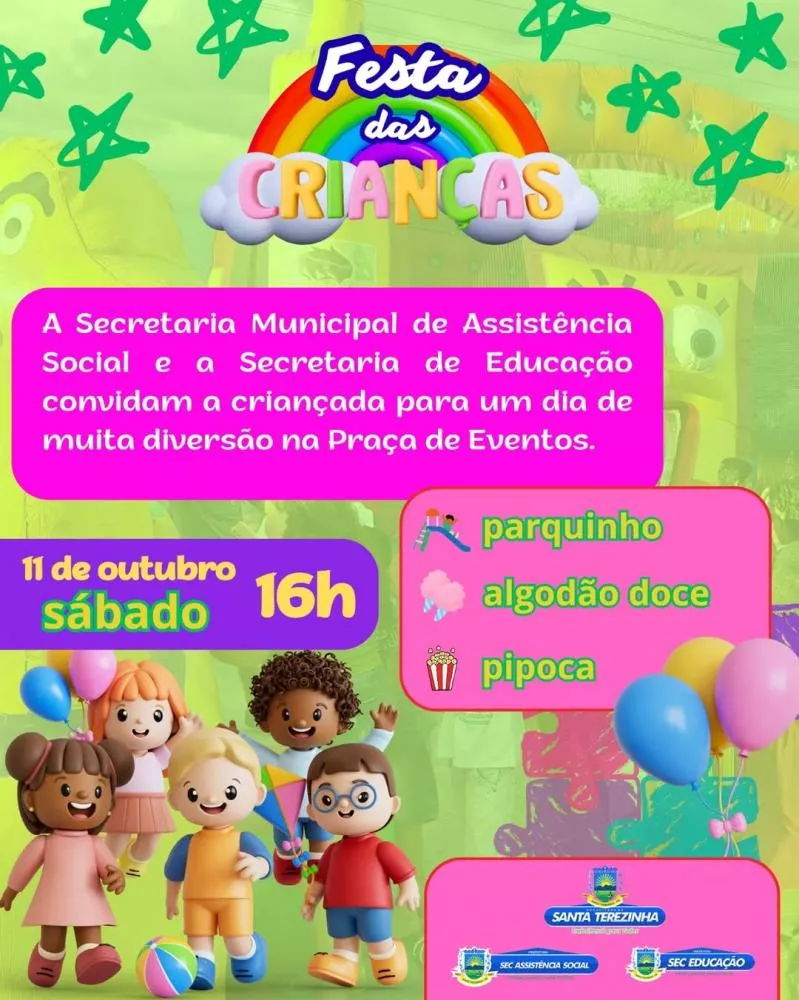 Festa das Crianças Prefeitura de Santa Terezinha prepara grande Festa das Crianças com muita diversão na Praça de Eventos