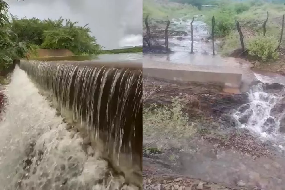 Chuvas em 2026 Açudes Tubarão e Tubarãozinho, em São José do Bonfim, transbordam após fortes chuvas e levam recarga ao Açude do Jatobá, em Patos