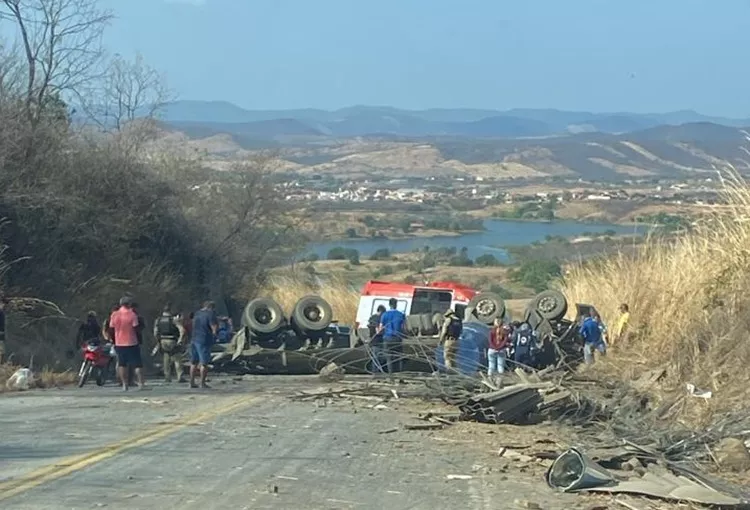 Acidente fatal Motorista morre e dois ficam feridos após caminhão tombar na serra de Monte Horebe, no Sertão da Paraíba