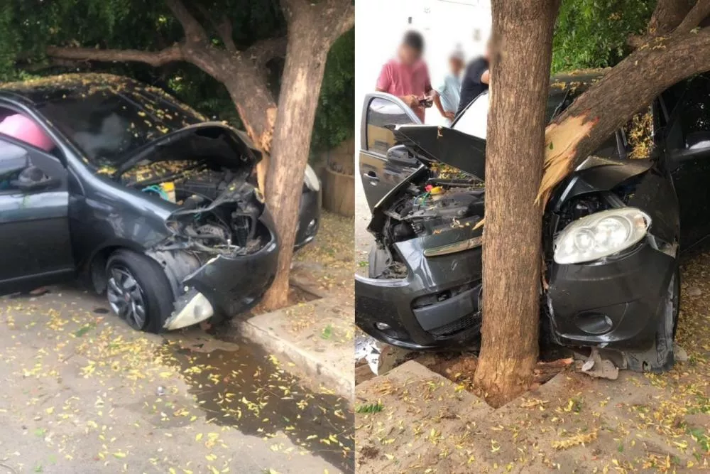 Acidente Carro colide com árvore no bairro Salgadinho, em Patos, na manhã desta quinta-feira (1º), após o condutor perder o controle