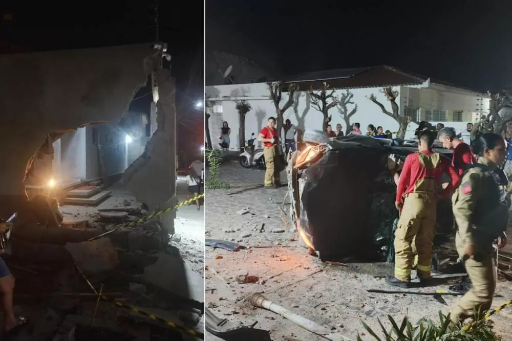 Acidente grave Carro atinge muro de residência e capota durante fuga após colidir com motocicleta no bairro Liberdade, em Patos