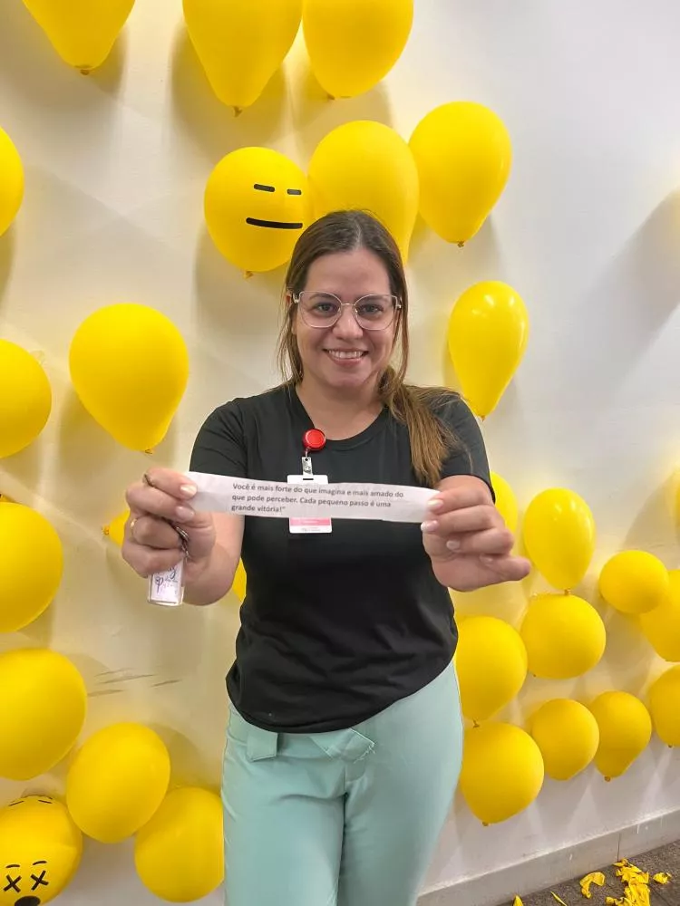 Antes de convidar as pessoas a estourarem os balões, a psicóloga Samanda Xavier, que integra a equipe da unidade, falou sobre o autocuidado que cada um deve ter para enfrentar melhor os desafios da vida. “Praticar atividades físicas regularmente, fazer checkups médicos de tempos em tempos, manter uma alimentação saudável, ter boas relações de amizade, fazer uma terapia para acompanhar as questões emocionais são autocuidados que estão ao nosso alcance, mas que muitas vezes são negligenciados”, reforçou a psicóloga.