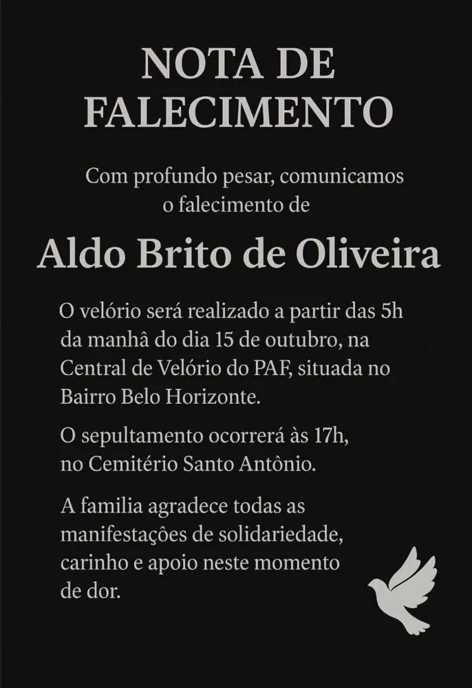 Amigos e familiares lamentam profundamente a perda de Aldo Brito, lembrado por sua alegria, simplicidade e amizade sincera, deixando saudades em todos que conviveram com ele.
