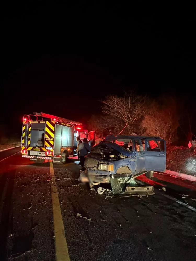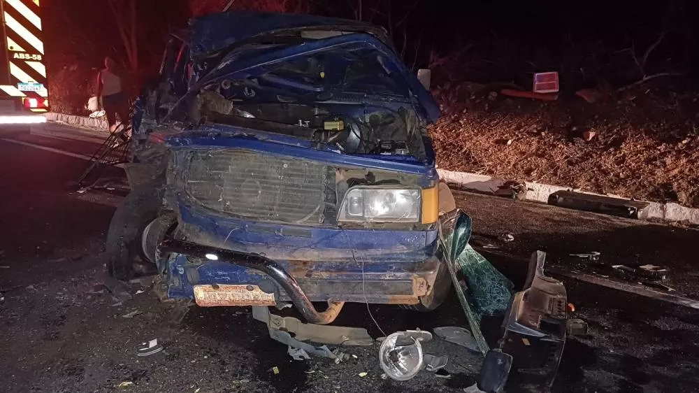 De acordo com informações da Polícia Rodoviária Federal (PRF), que atendeu à ocorrência, o sinistro do tipo colisão frontal envolveu um caminhão Volkswagen Constellation 24.280, de cor prata, e uma caminhonete GM Veraneio, de cor azul.
