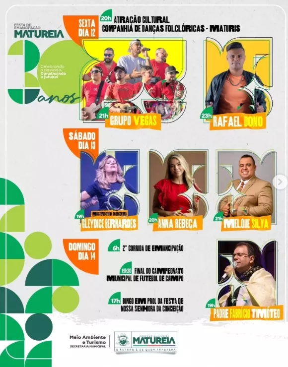 Cultura e Festa Matureia celebra 30 anos com programação cultural, esportiva e religiosa de 12 a 14 de dezembro