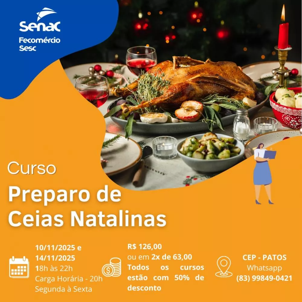- Preparo de Ceias Natalinas - R$ 126,00 ou 2x de R$ 63,00 (10/11 a 14/11 | 18h às 22h)
