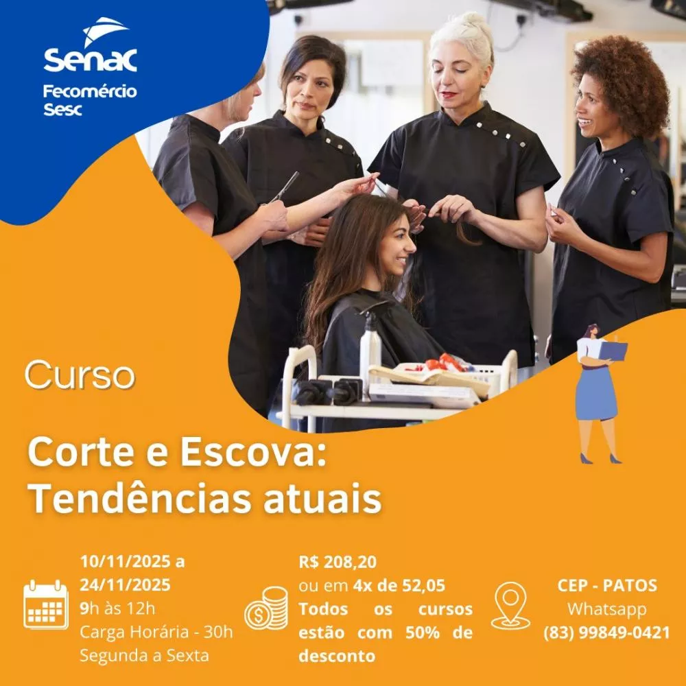 - Corte e Escova: Tendências Atuais - R$ 208,20 ou 4x de R$ 52,05 (10/11 a 24/11 | 09h às 12h)