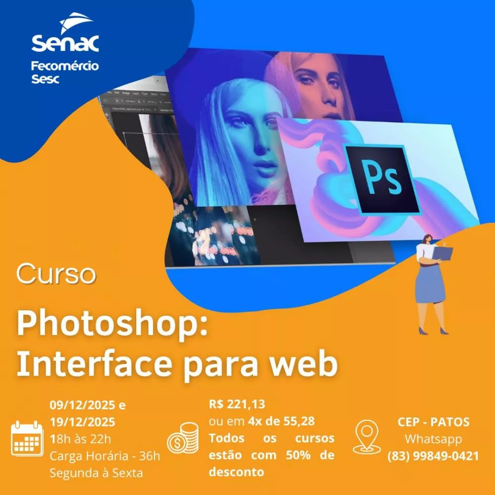 - Photoshop: Interface para Web - R$ 221,13 ou 4x de R$ 55,28 (09/12 a 19/12 | 18h às 22h)