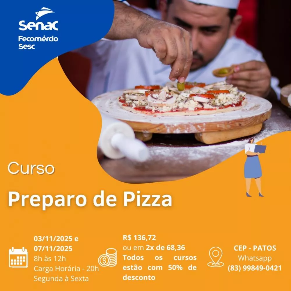 - Preparo de Pizza - R$ 136,71 ou 2x de R$ 68,36 (03/11 a 07/11 | 08h às 12h)