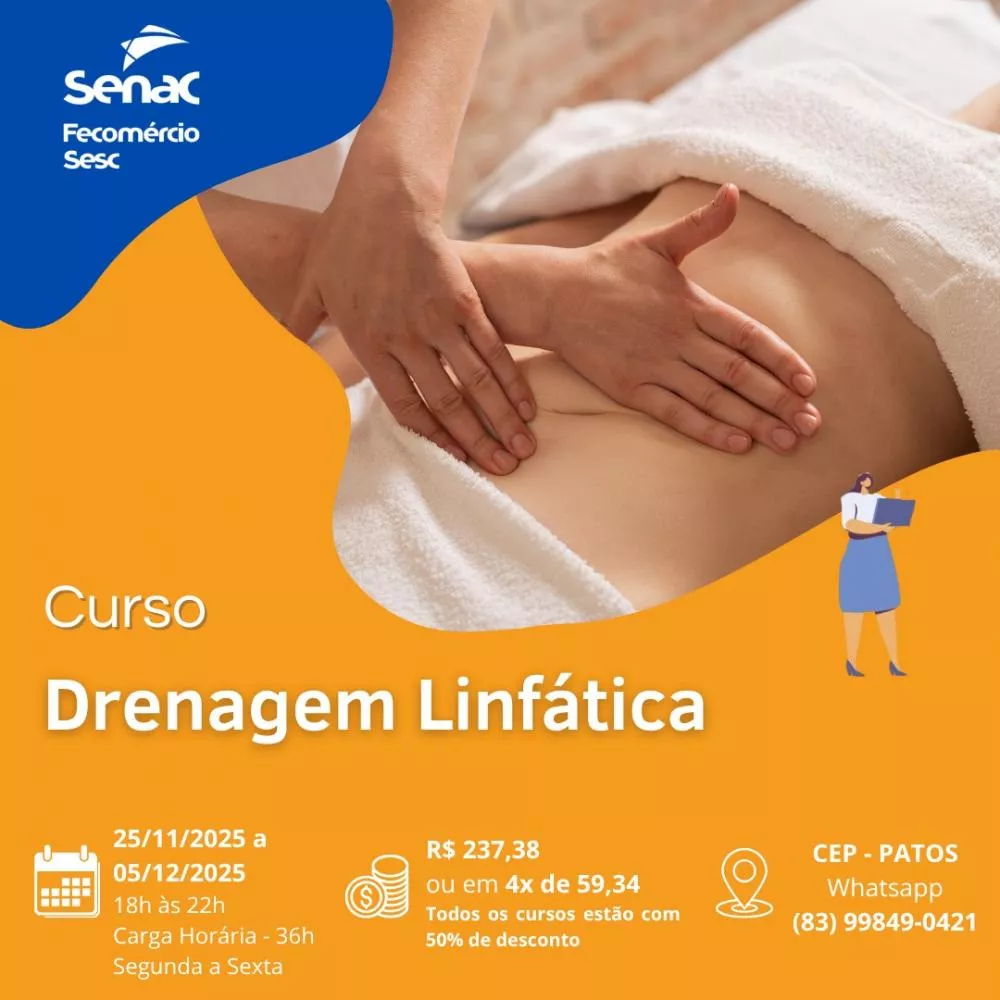- Drenagem Linfática - R$ 237,38 ou 4x de R$ 59,34 (25/11 a 05/12 | 18h às 22h)