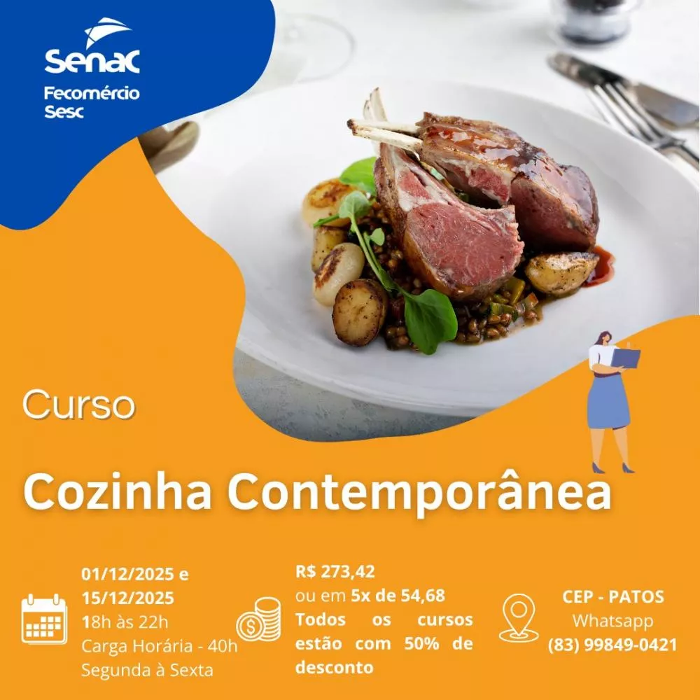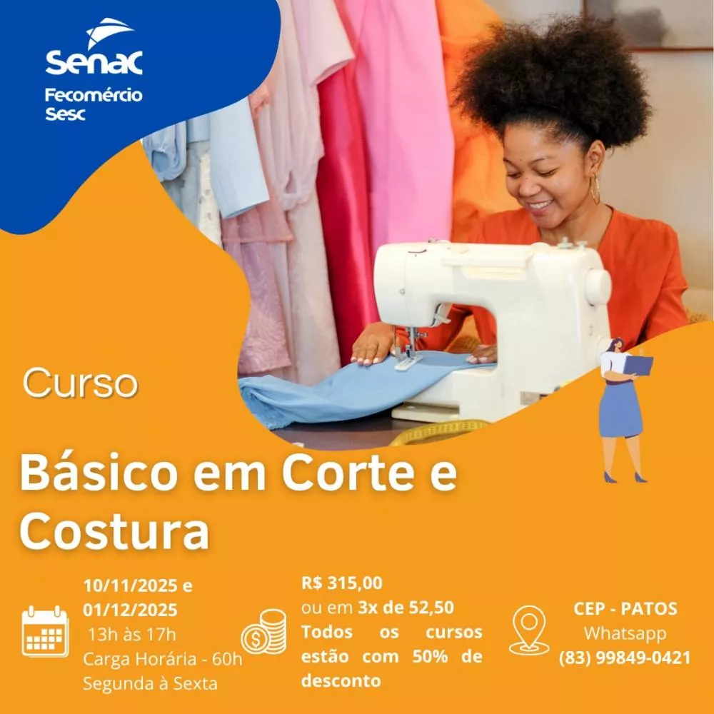 O Serviço Nacional de Aprendizagem Comercial (Senac) da Paraíba está com inscrições abertas para novos cursos profissionalizantes nos meses de novembro e dezembro, com 50% de desconto em todas as formações. As oportunidades são nas áreas de Tecnologia da Informação, Moda, Beleza e Gastronomia.