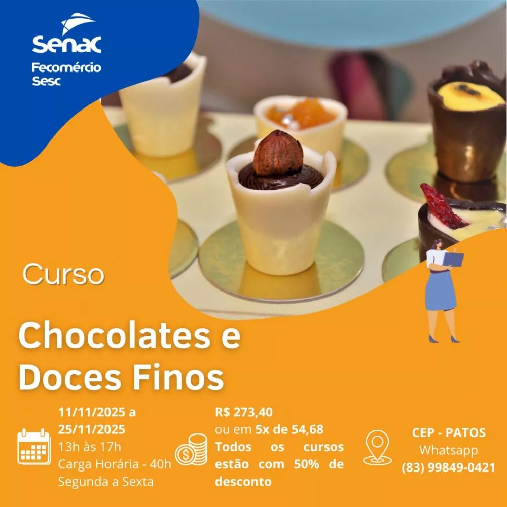 - Chocolates e Doces Finos - R$ 273,40 ou 5x de R$ 54,68 (11/11 a 25/11 | 13h às 17h)